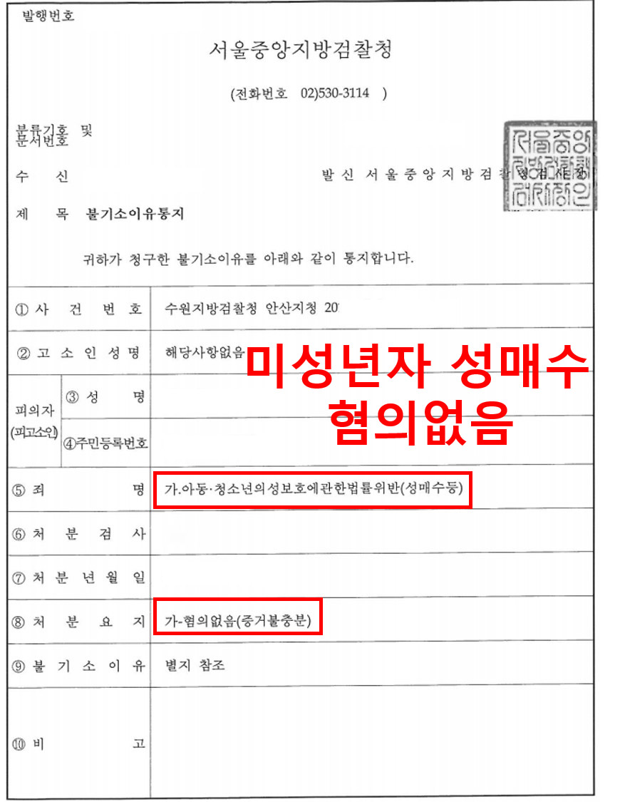 #아청법위반(성매수등) #혐의없음 #불기소결정