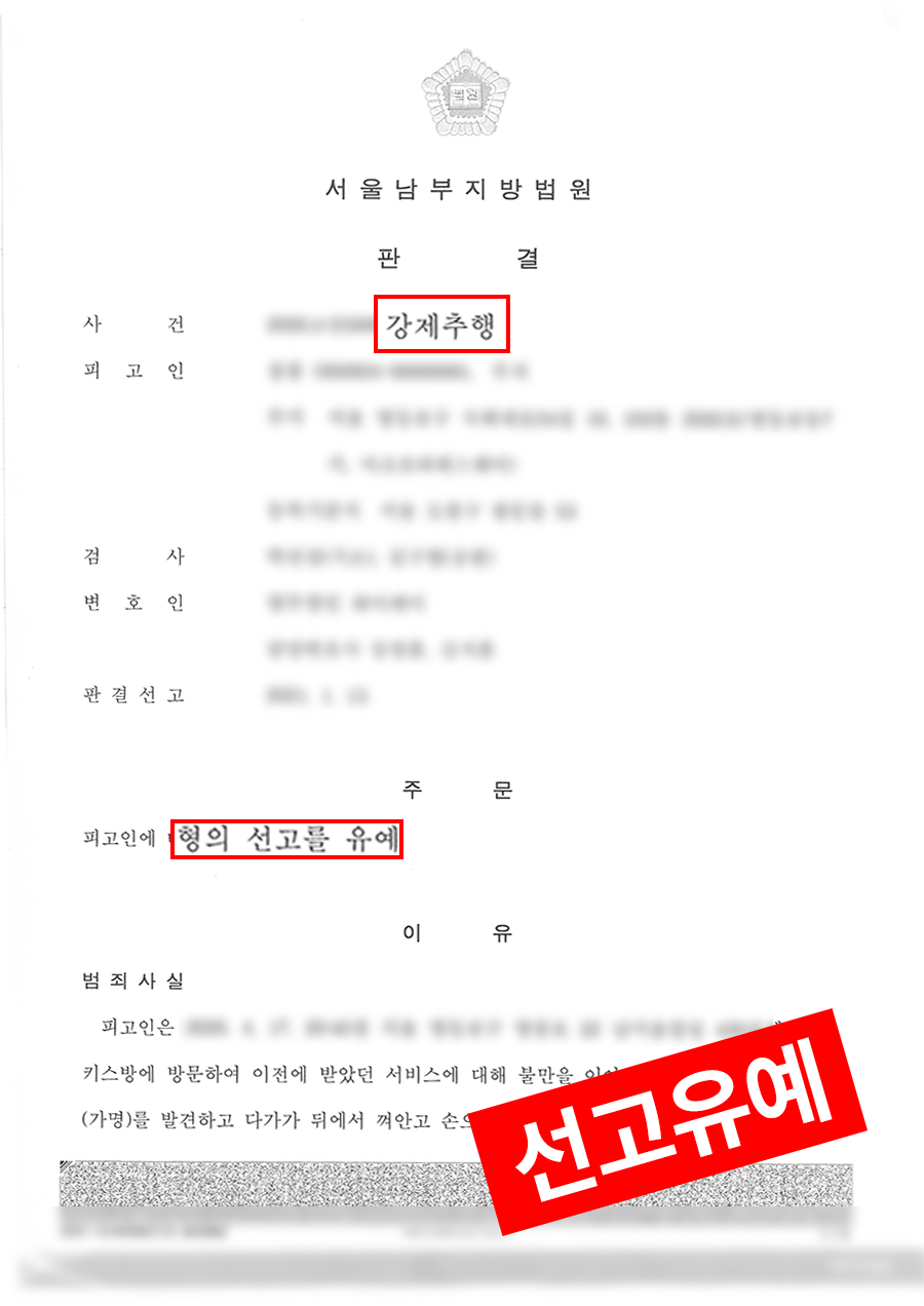 #강제추행 #초범 #벌금형선고유예 #키스방 #종업원추행