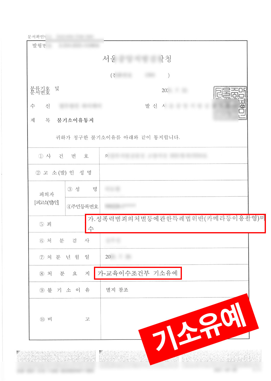 검찰 측은 위의 사실들을 고려하여 성폭력사범 재범방지 교육 프로그램 이수를 조건으로 기소 유예 처분을 내렸습니다.