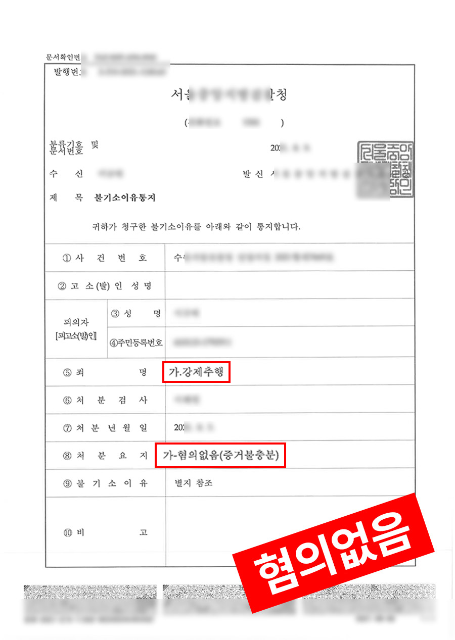 이에 검찰에서는 증거 불충분하여 혐의가 없다는 처분을 내렸습니다.