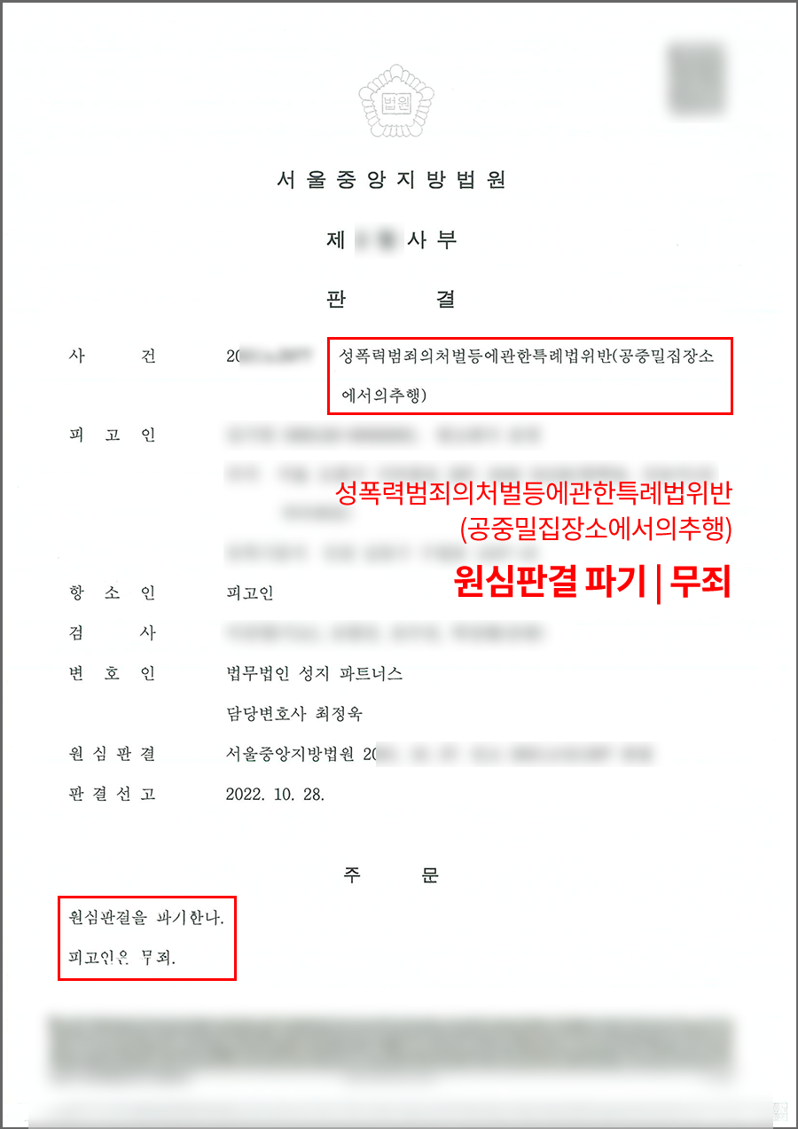 법무법인 성지 파트너스에서는 다년간 수많은 성범죄 사건을 맡아 처리해본 경험이 있는 형사전문변호사가 사건을 담당하여, 건에서도 고소인 진술 중 통상적인 사실관계에 비추어볼 때 신빙성이 떨어지는 부분을 정확히 파악해내어 이를 적극적으로 파고들었고, 그 밖에 각종 의뢰인에게 유리한 간접사실 등을 다수 확보한 결과 무죄라는 최고의 결과를 만들어낼 수 있었습니다.