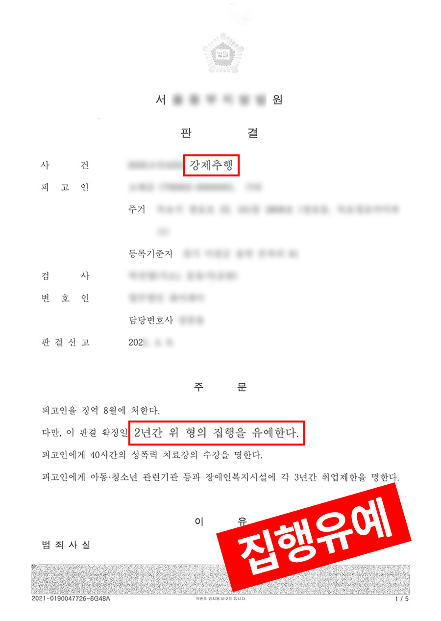 처하고 2년간 집행을 유예한다는 처분을 내렸습니다. 그리고